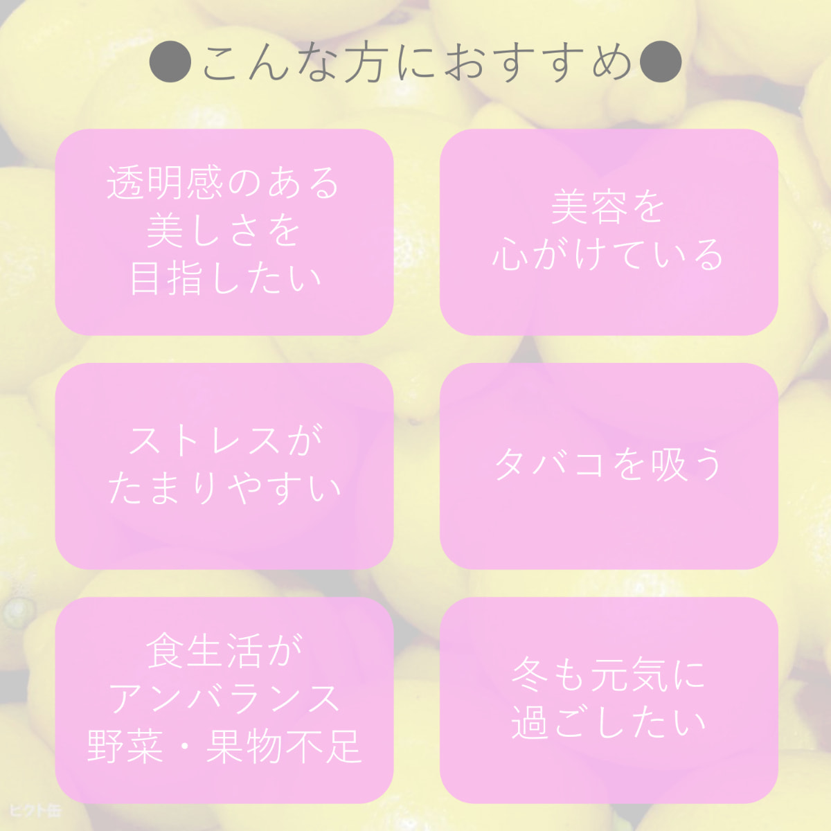 ビタミンCは、タバコやお酒、ストレスなどで簡単に消費されてしまうビタミン。